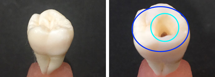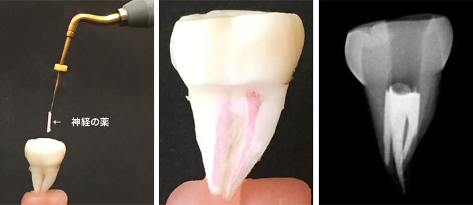 穴の1番奥の神経まで空洞が残らないように薬をしっかりと充填しなければなりません。