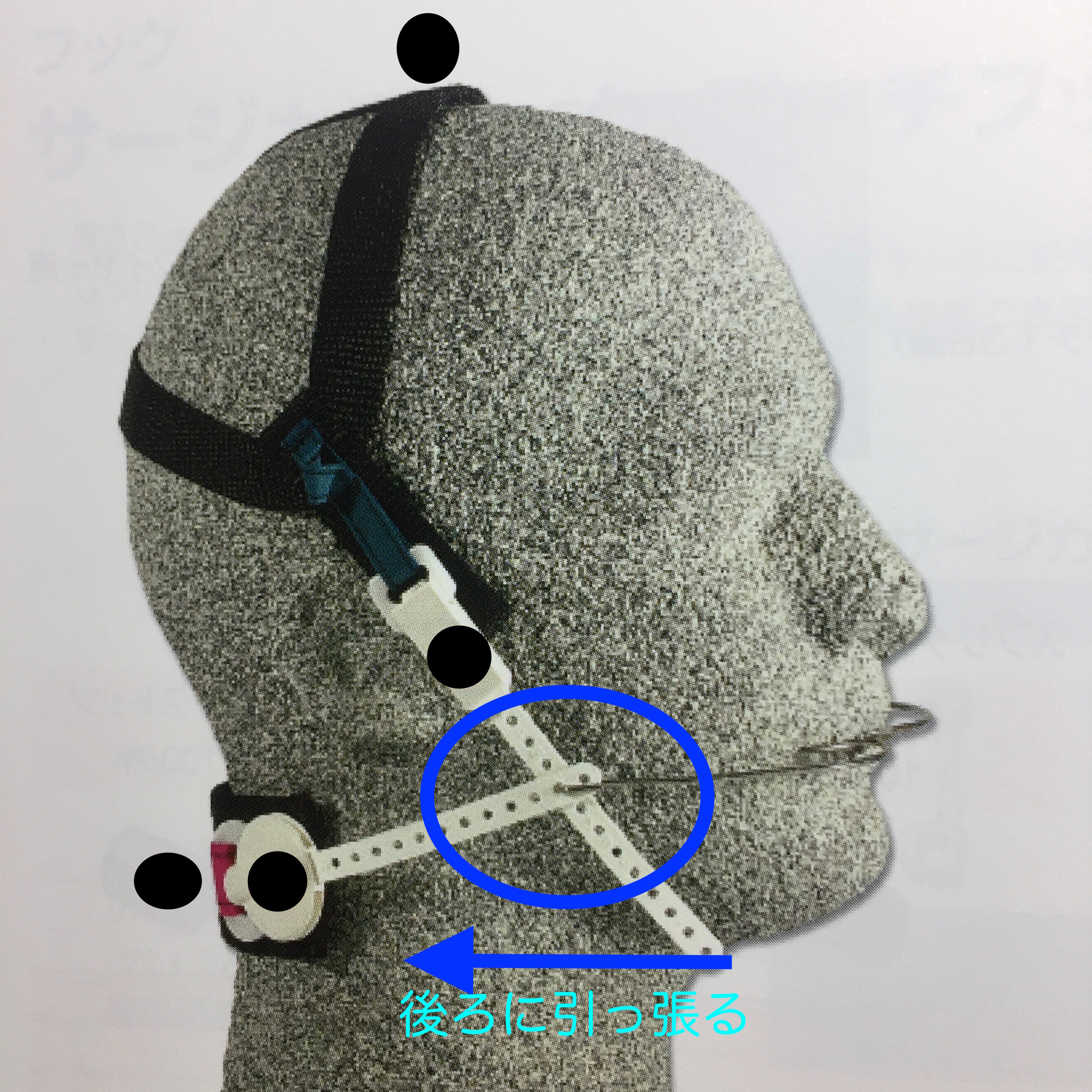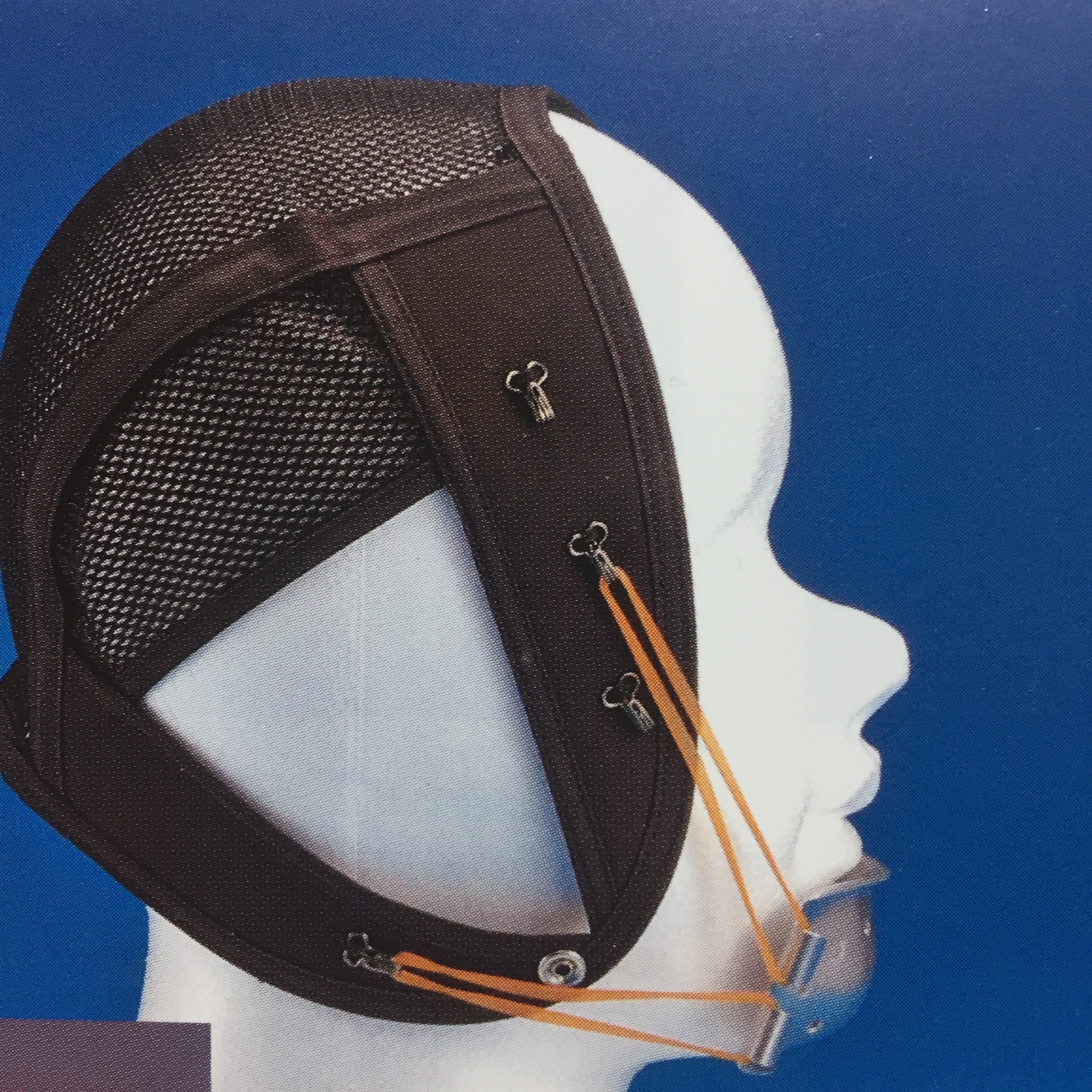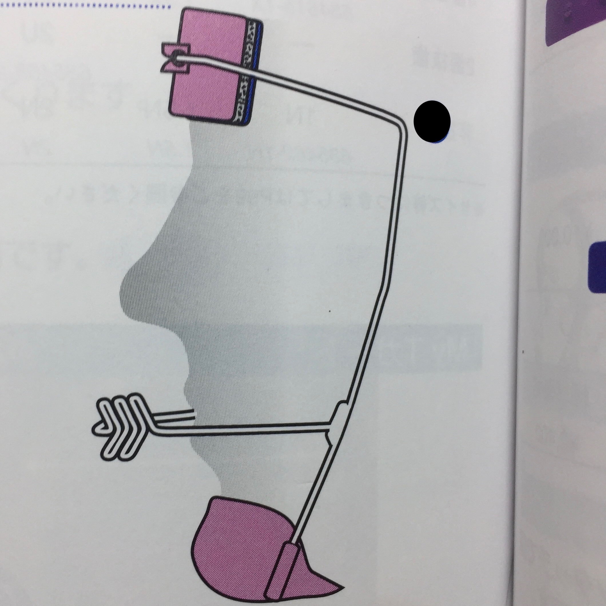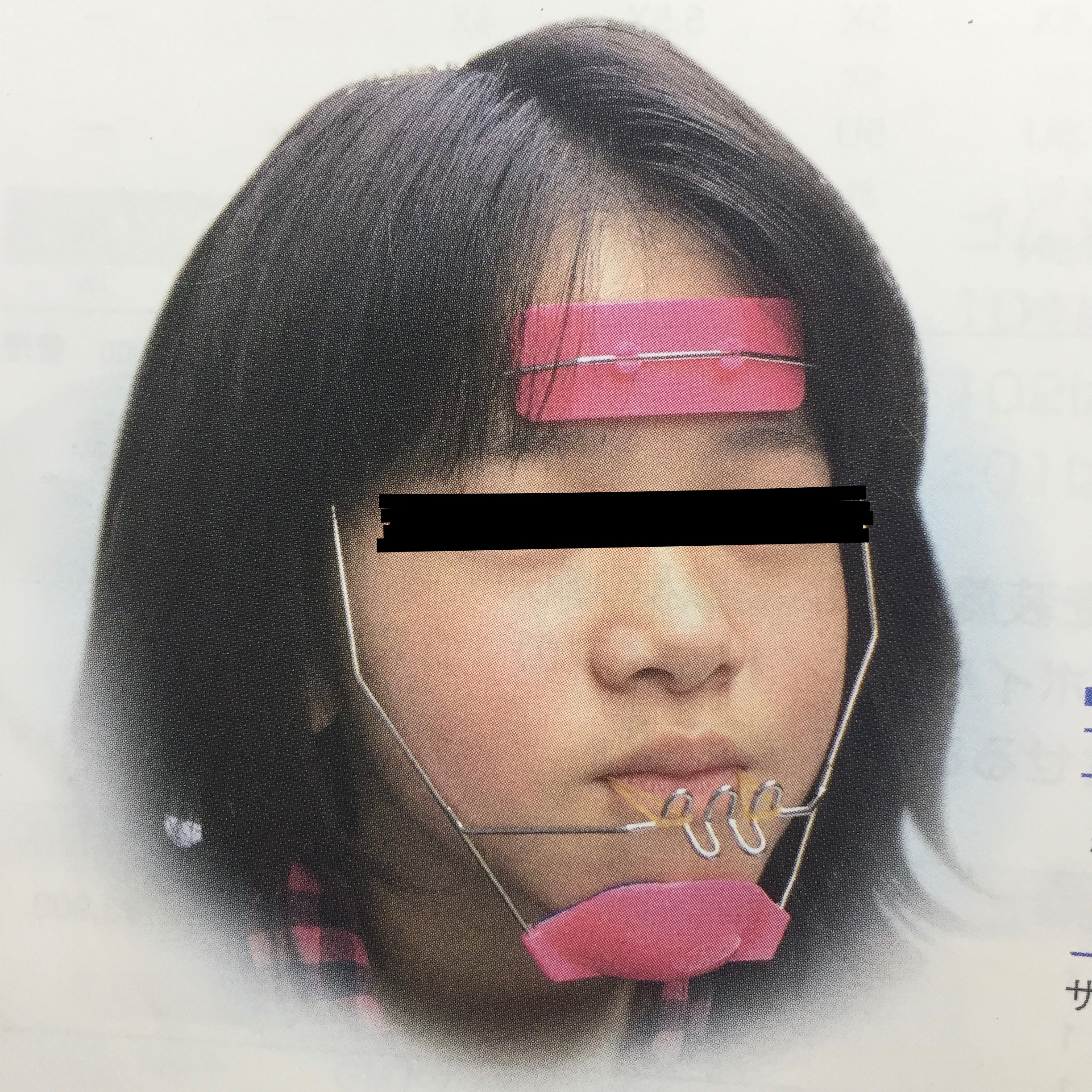 下アゴの成長抑制のために、このようなヘッドギアを使っていただく場合もあります。(20才位まで)