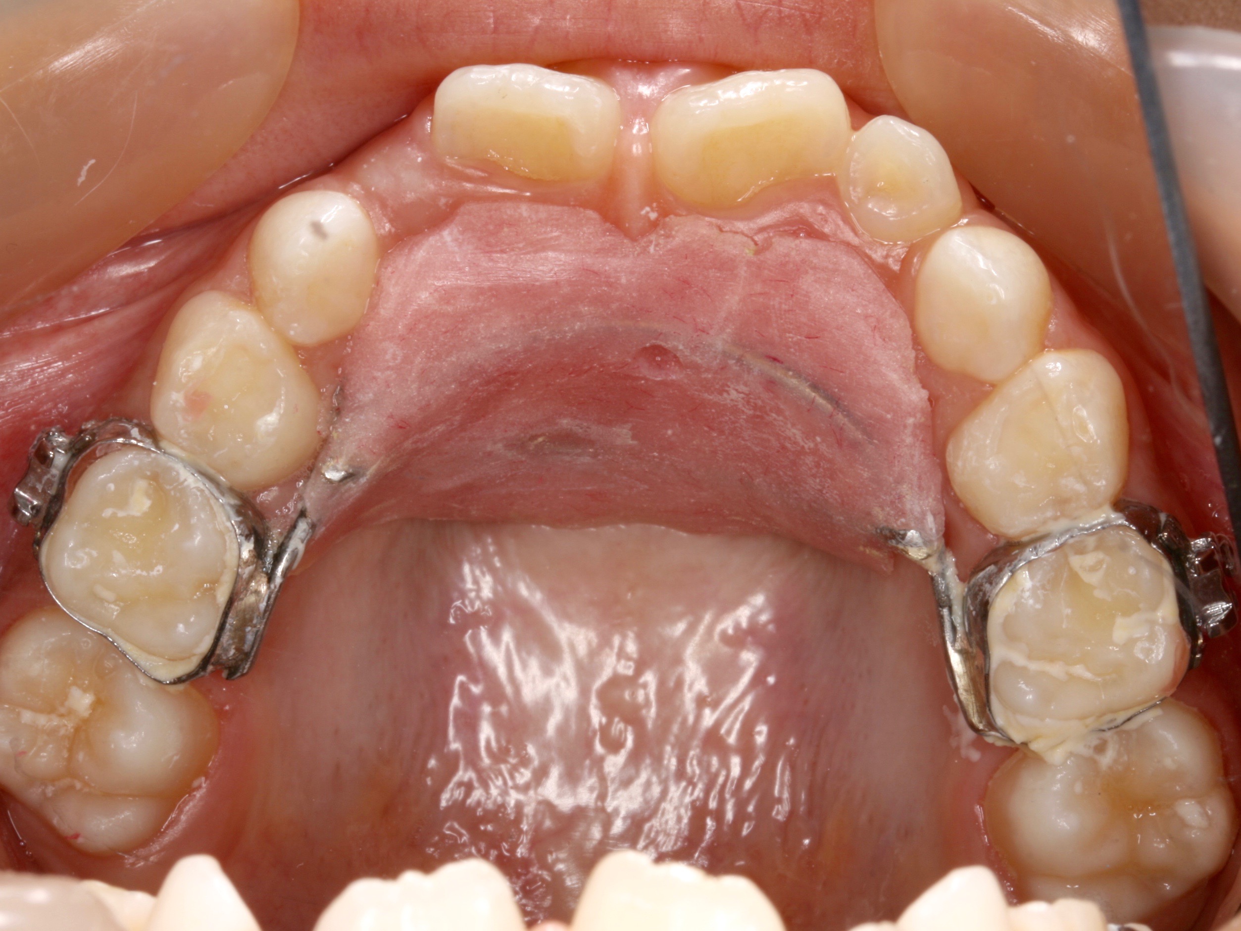 そこでできるだけ早いうちに、10歳位までに上アゴの成長を促進する装置を入れるのが、オススメです。