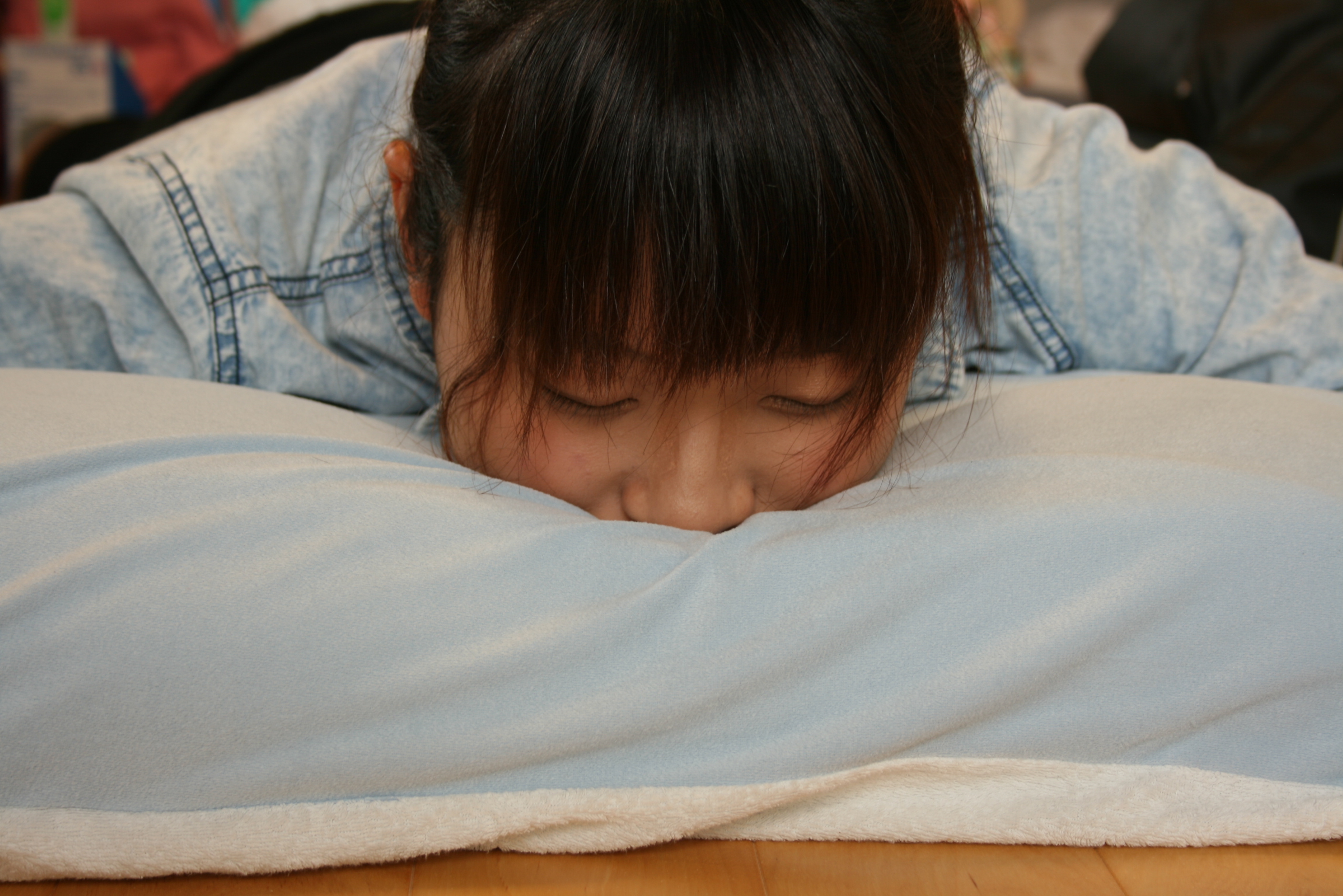 枕をあてる場所は頭の骨、頬骨にしてください。枕をアゴにあてないでください。腰痛のある人は、仰向けよりも横向きに寝ることが多いと思いますが、注意してください。抱き枕を工夫しても良いかもしれません。