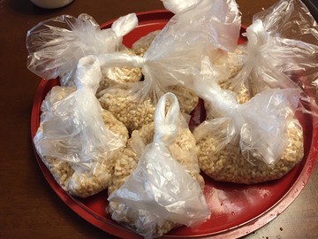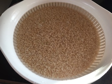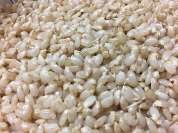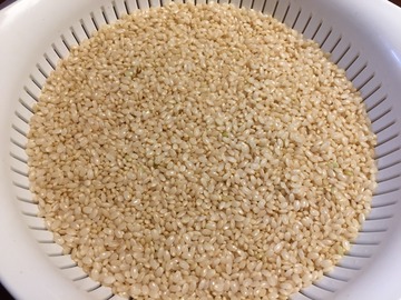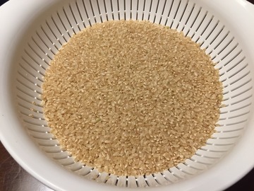 玄米の入ったザルを水の入ったボールからあげます。二日間ほど室温で置いておきます。