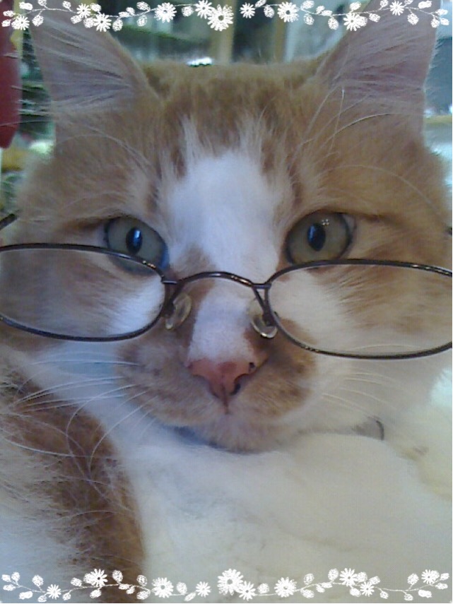 眼鏡をかけておすまししています。