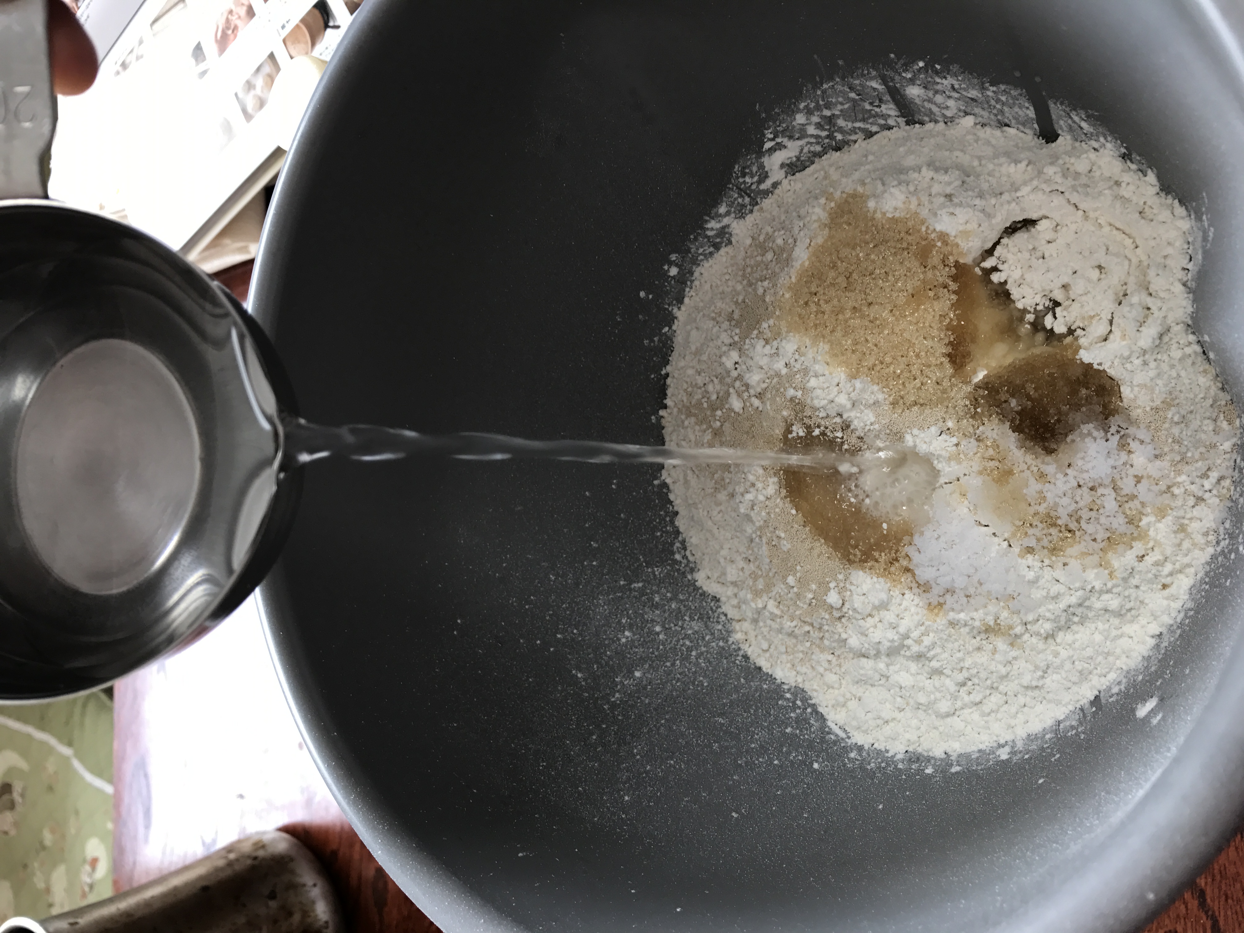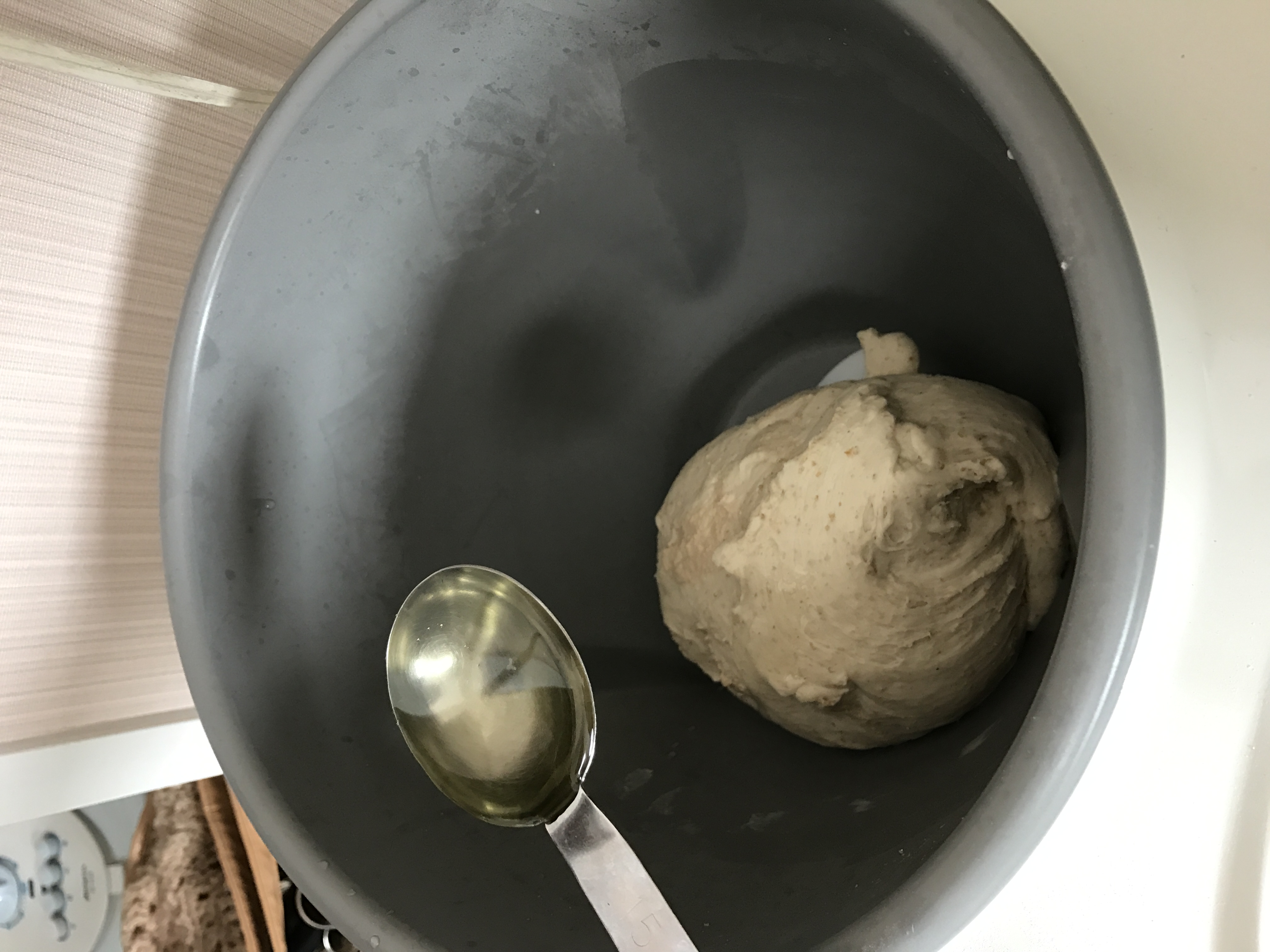 ①ごま油以外の材料を合わせて、パンこね機でこねる (手でも十分できます)