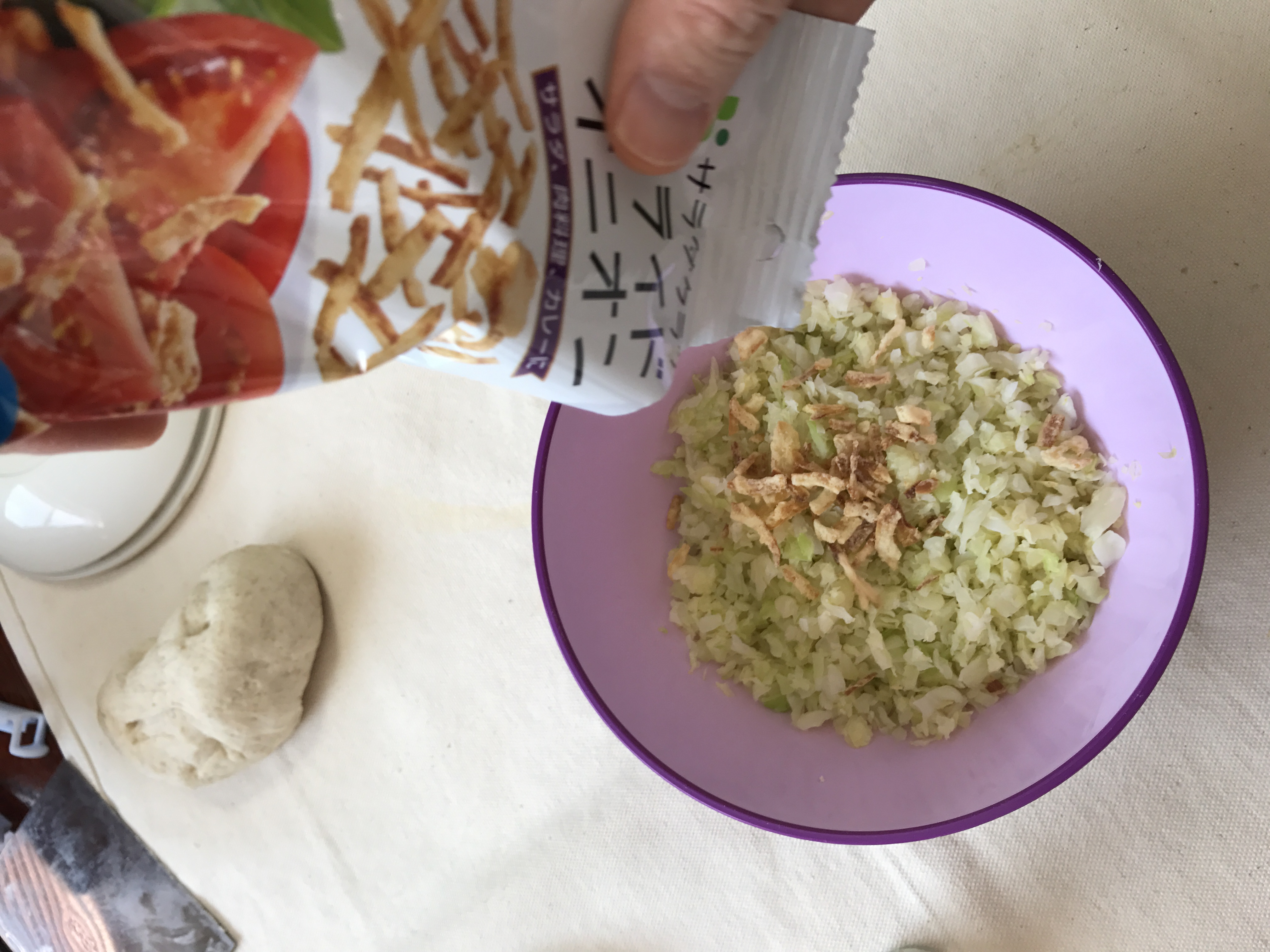 キャベツとフライドオニオンの中華まん