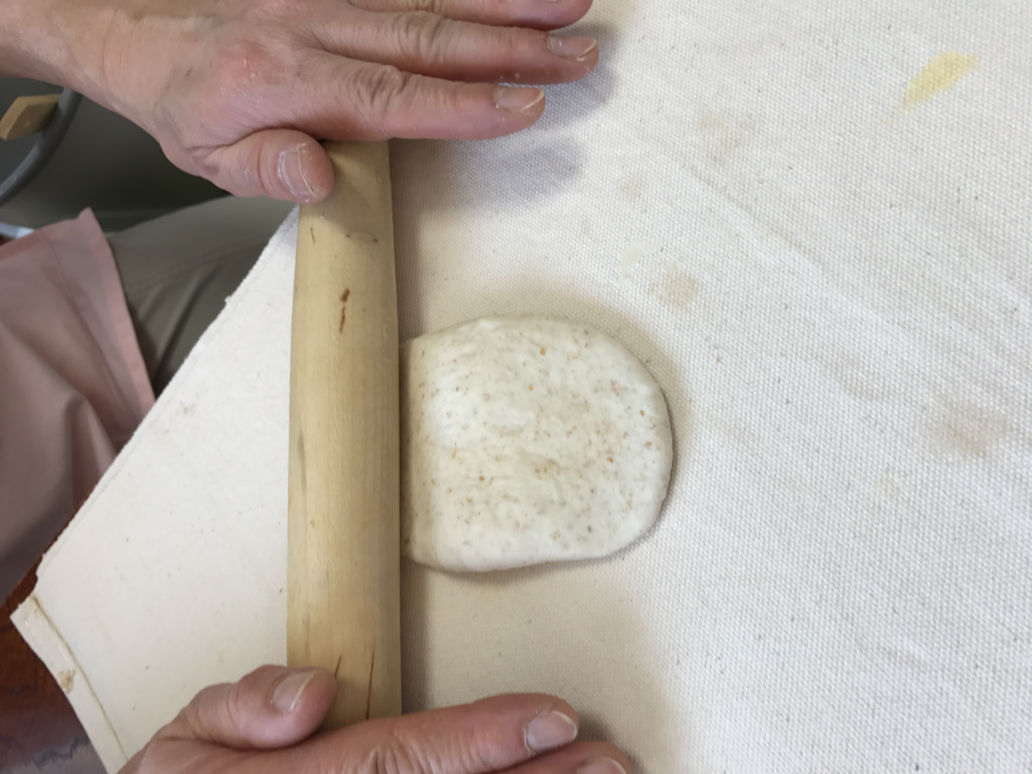 ⑤一次発酵後...生地を8等分して、めん棒をつかって伸ばします。