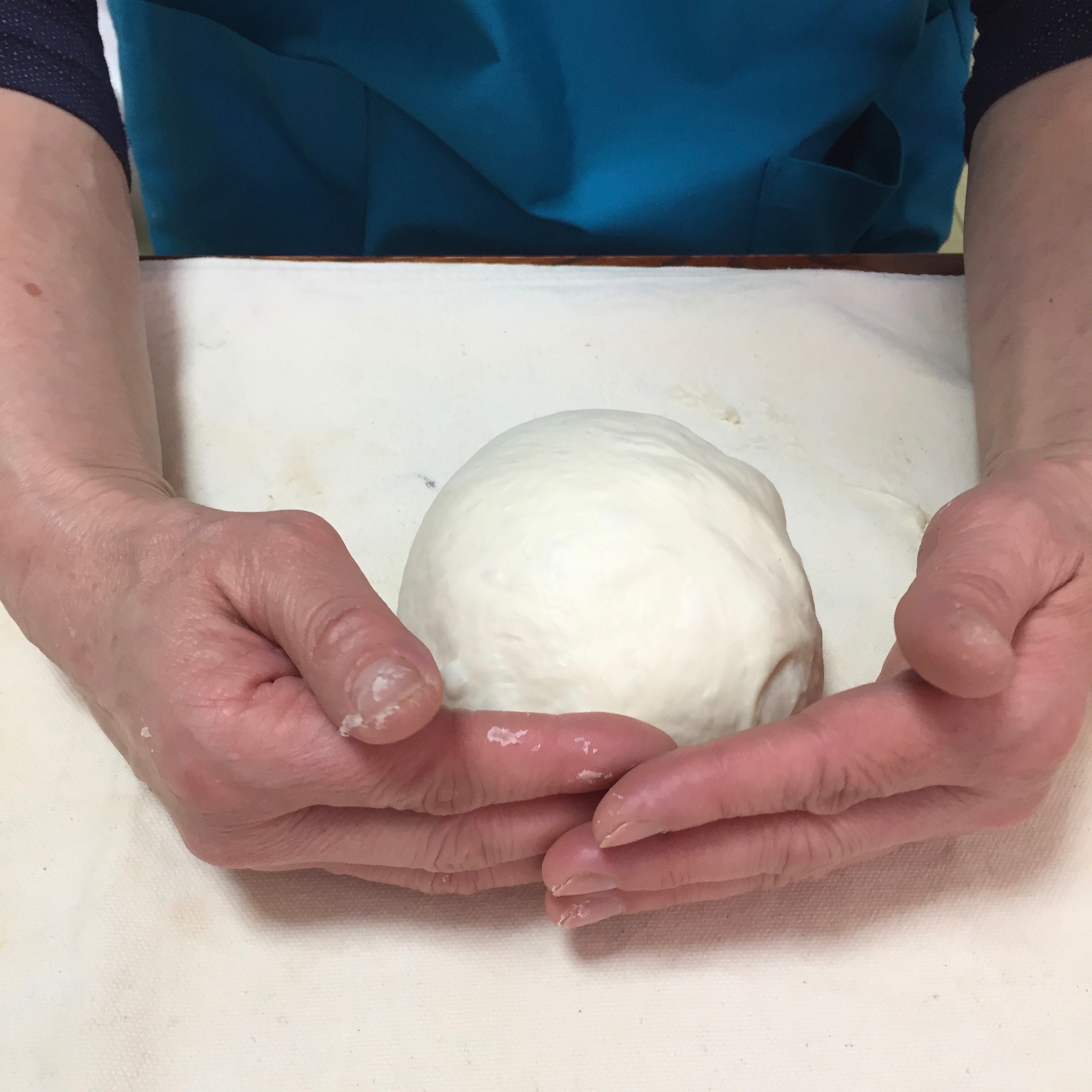 成型するときのコツは、生地を張らせながら丸めることです。