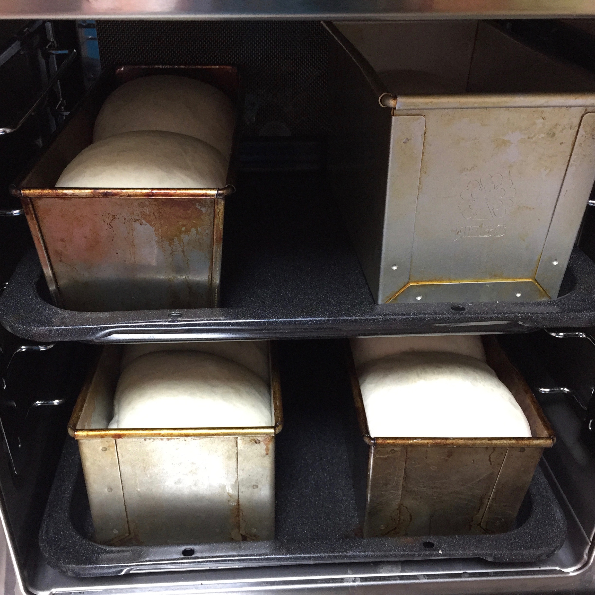 食パンケースに入れて仕上発酵を35分程していきます。