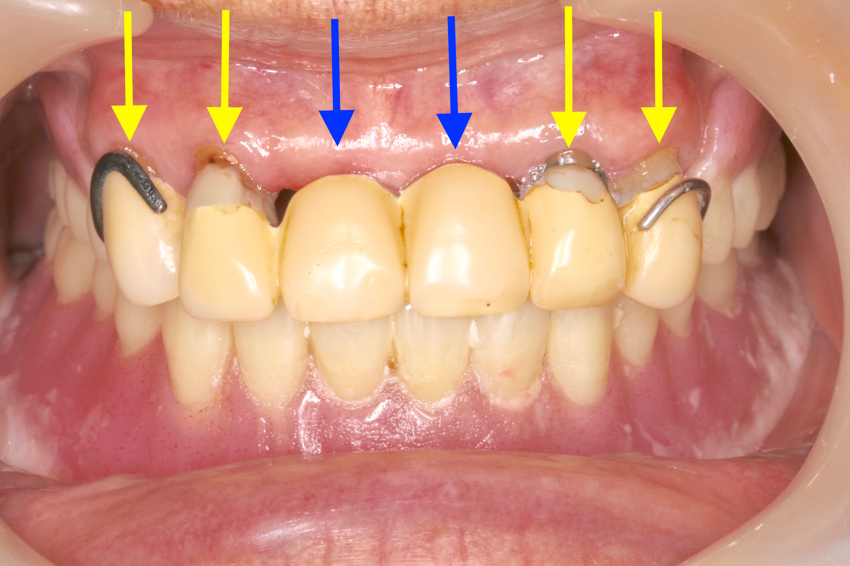 このような場合、多くは寿命の長い糸切り歯が残っています。